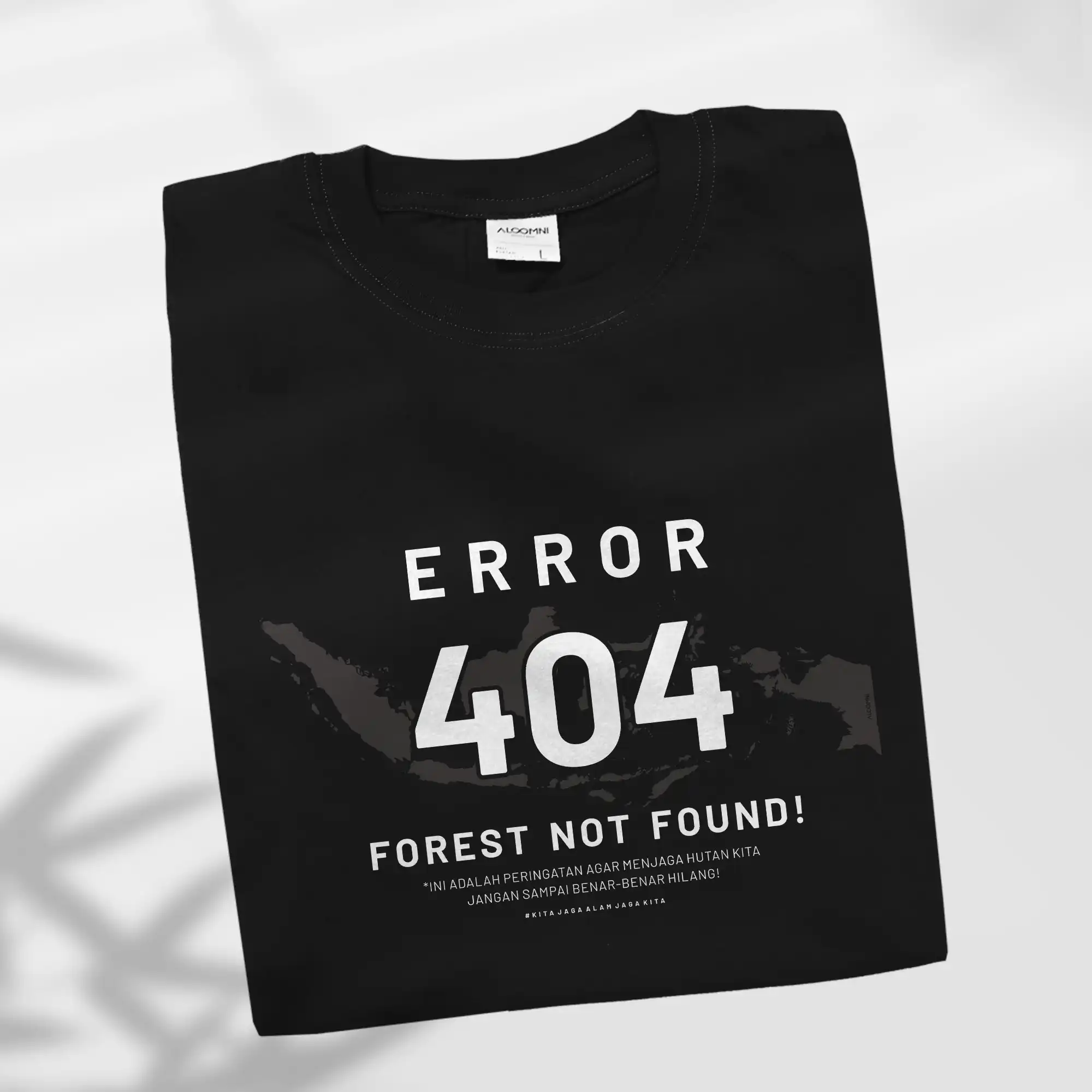 Kaos “404 Forest Not Found” adalah statement keras terhadap krisis lingkungan akibat deforestasi dan penebangan liar. Menggunakan istilah error code internet yang ikonik, kaos ini menyampaikan pesan bahwa hutan yang ditebang sembarangan akan hilang selamanya—tidak bisa diakses, dan konsekuensinya adalah bencana.