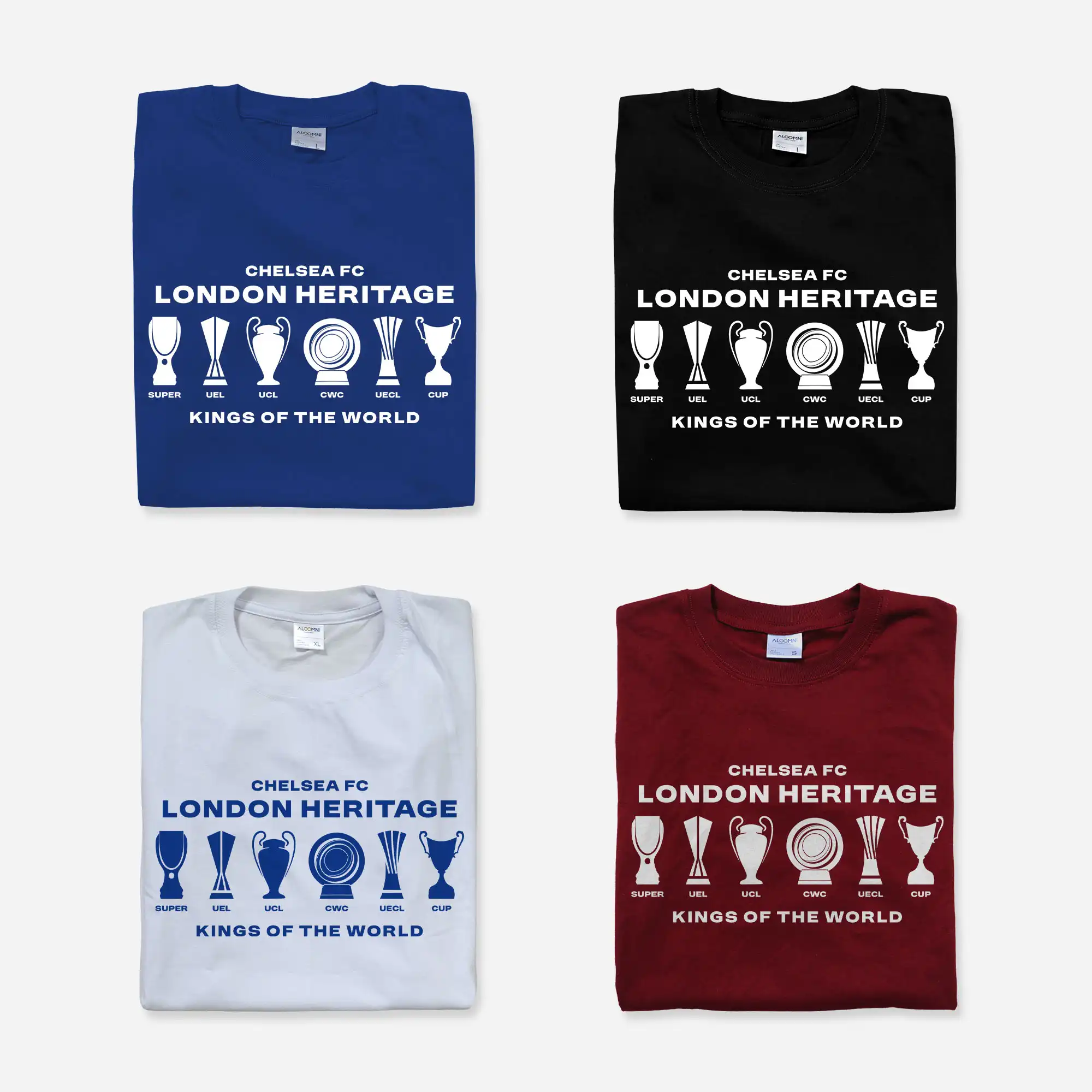 “Chelsea FC – King of the World! Rayakan kejayaan The Blues yang telah menaklukkan seluruh piala di dunia sepak bola. Kaos eksklusif untuk fans sejati, limited edition!”
