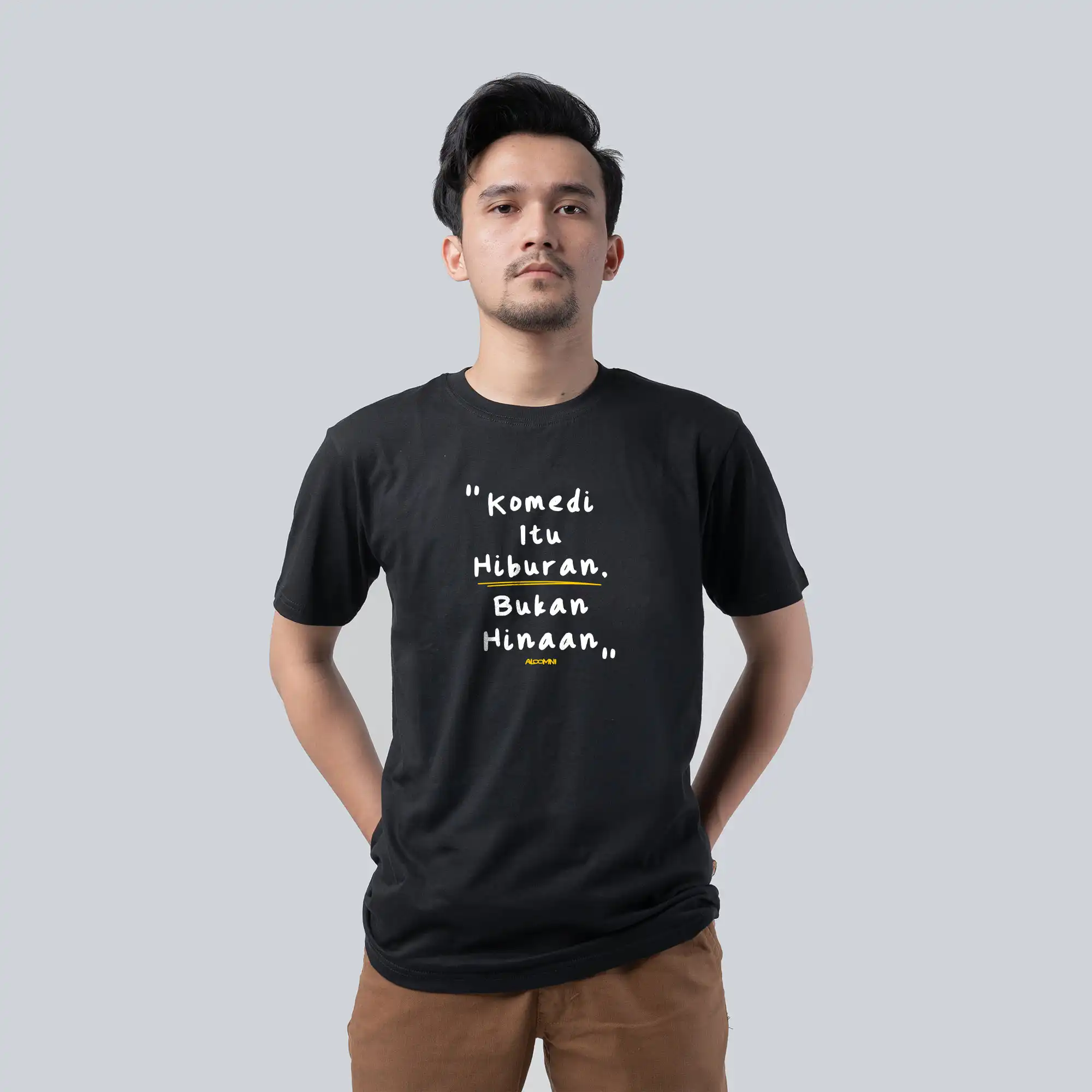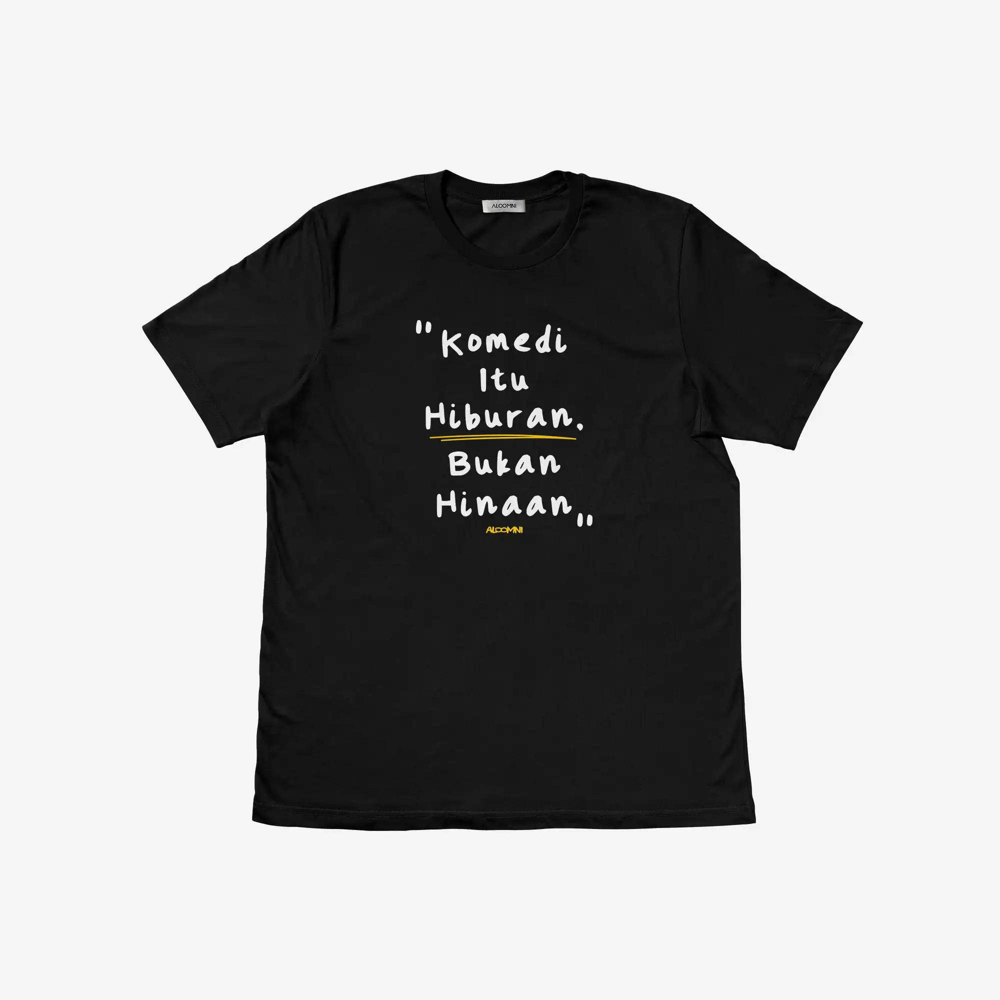 Komedi itu Hiburan, Bukan Hinaan. Sindiran untuk mereka yang berlindung di balik kata “bercanda” saat merendahkan orang lain. Stand up beretika! 100% Produk UMKM Lokal.