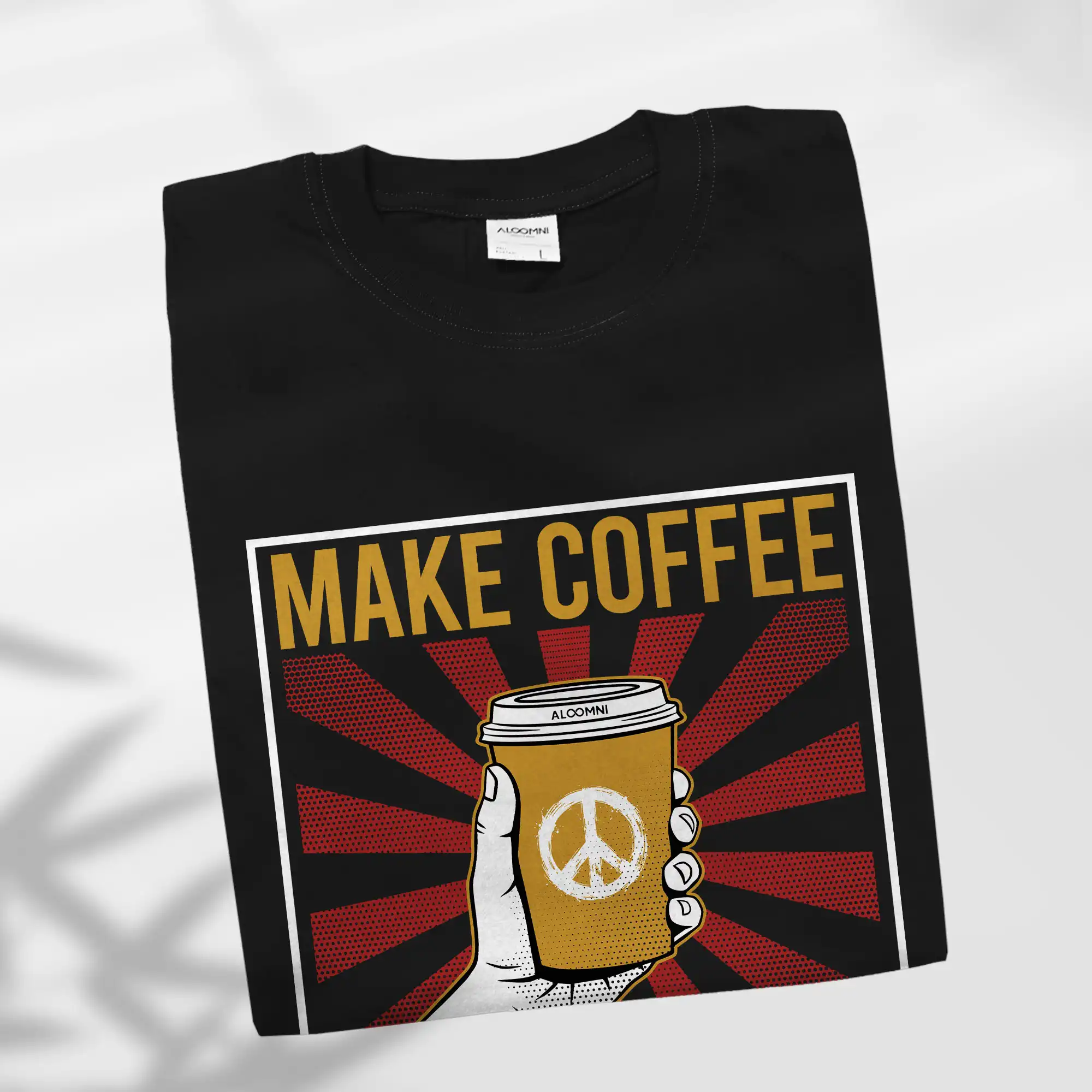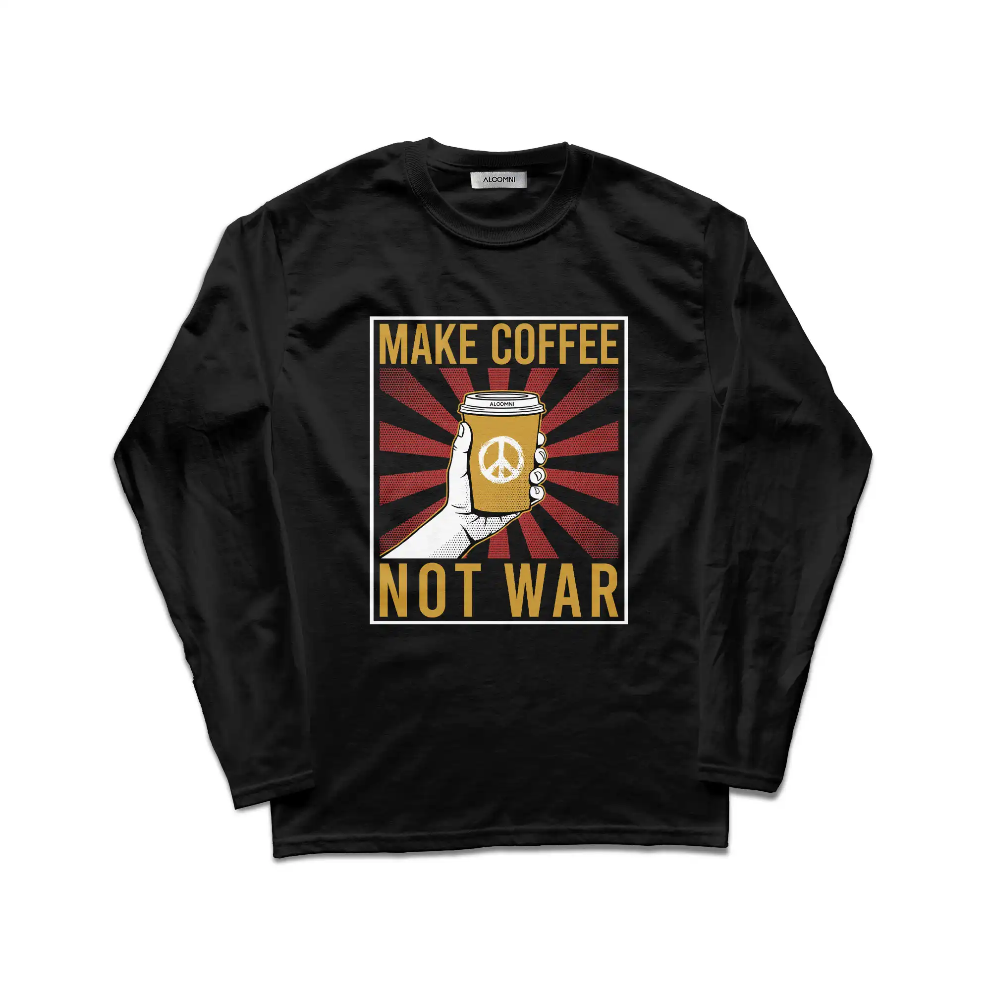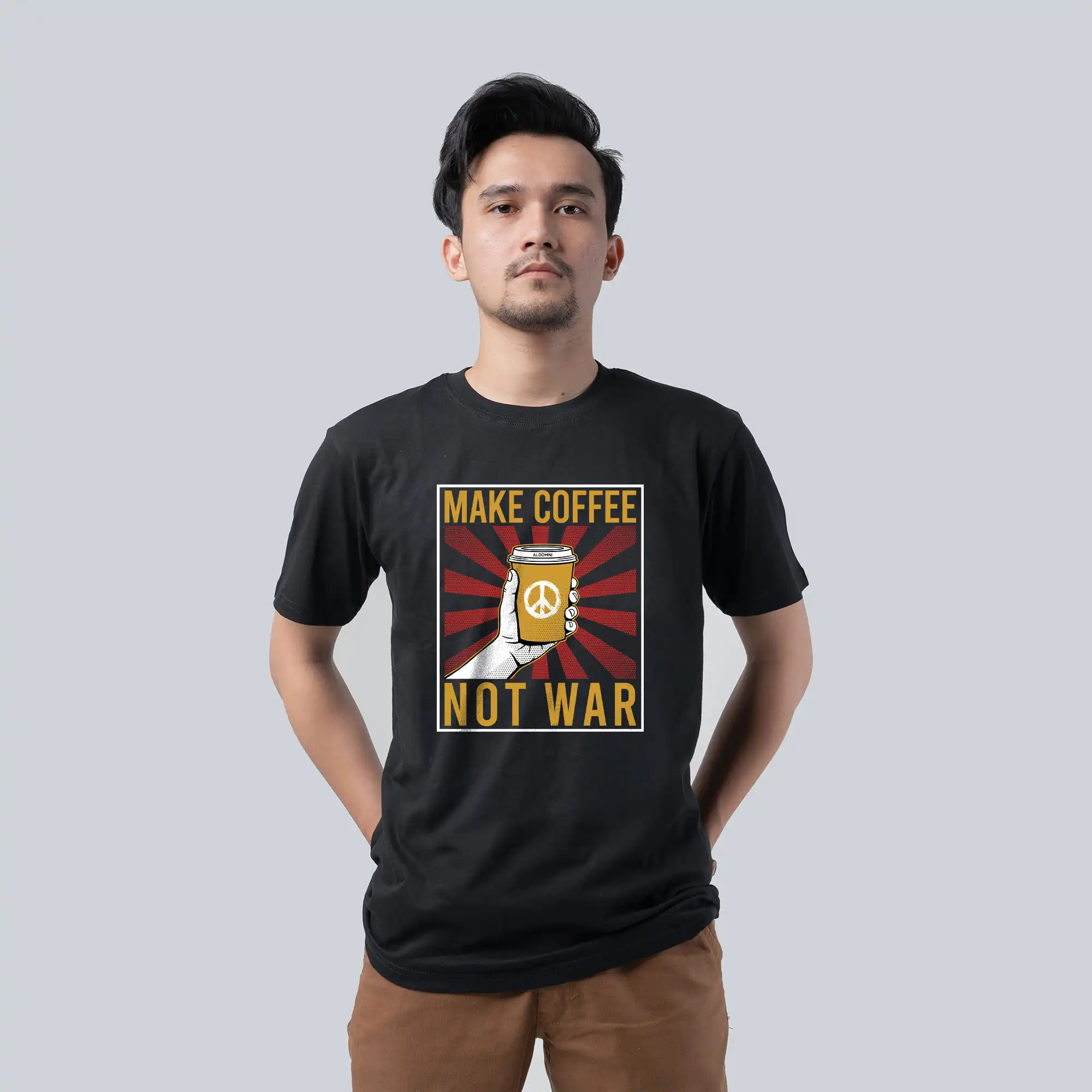 Make Coffee Not War. Daripada ribut, mending ngopi! Pesan damai paling asyik buat para penikmat kafein. Outfit santai yang pas buat nongkrong di coffee shop favoritmu. 100% Original Aloomni.