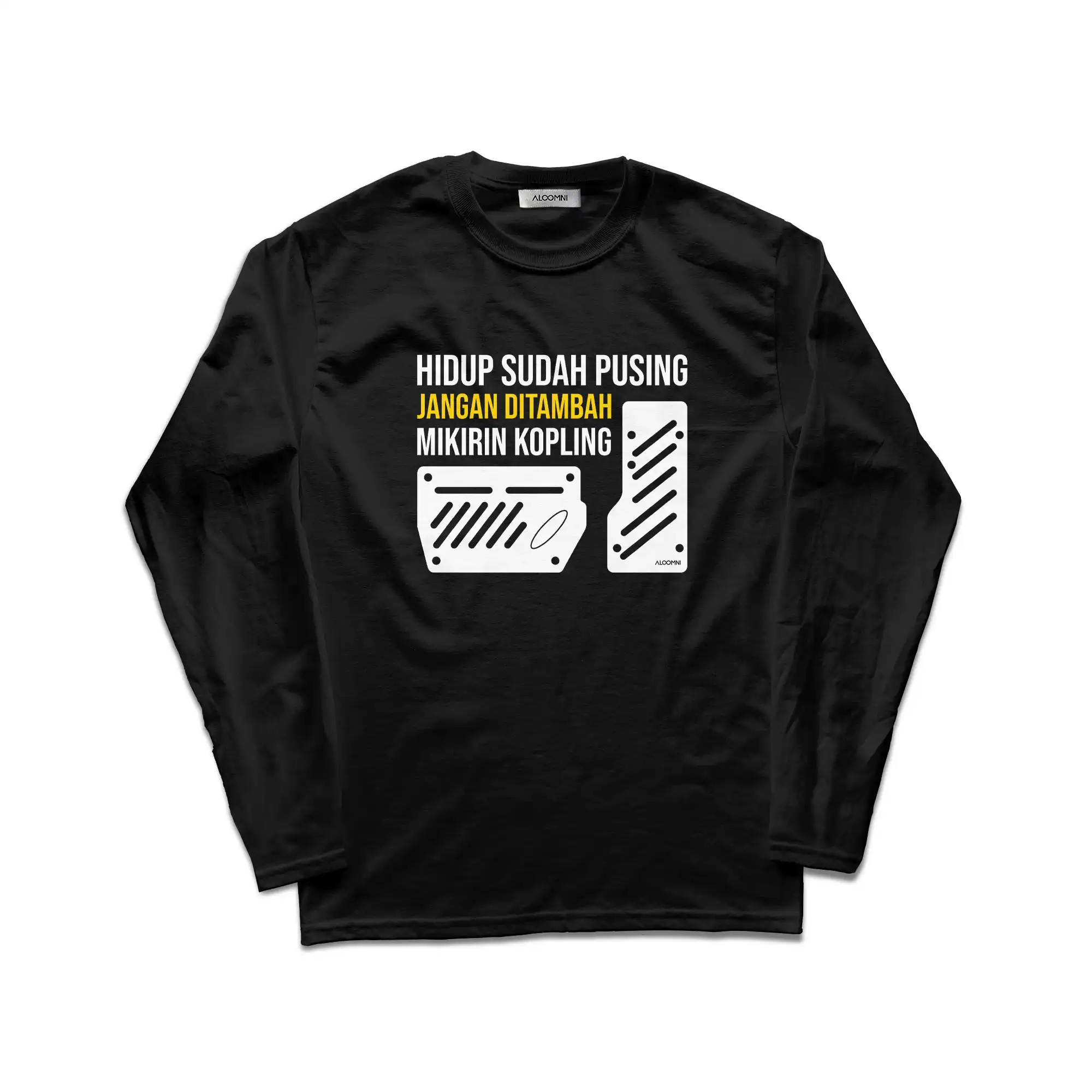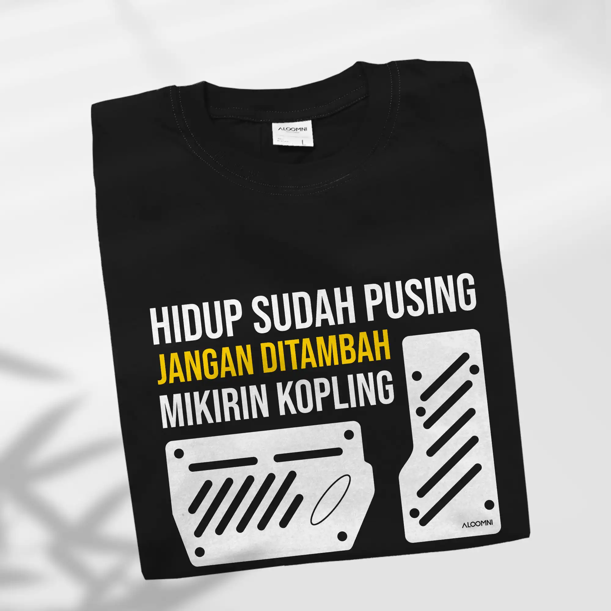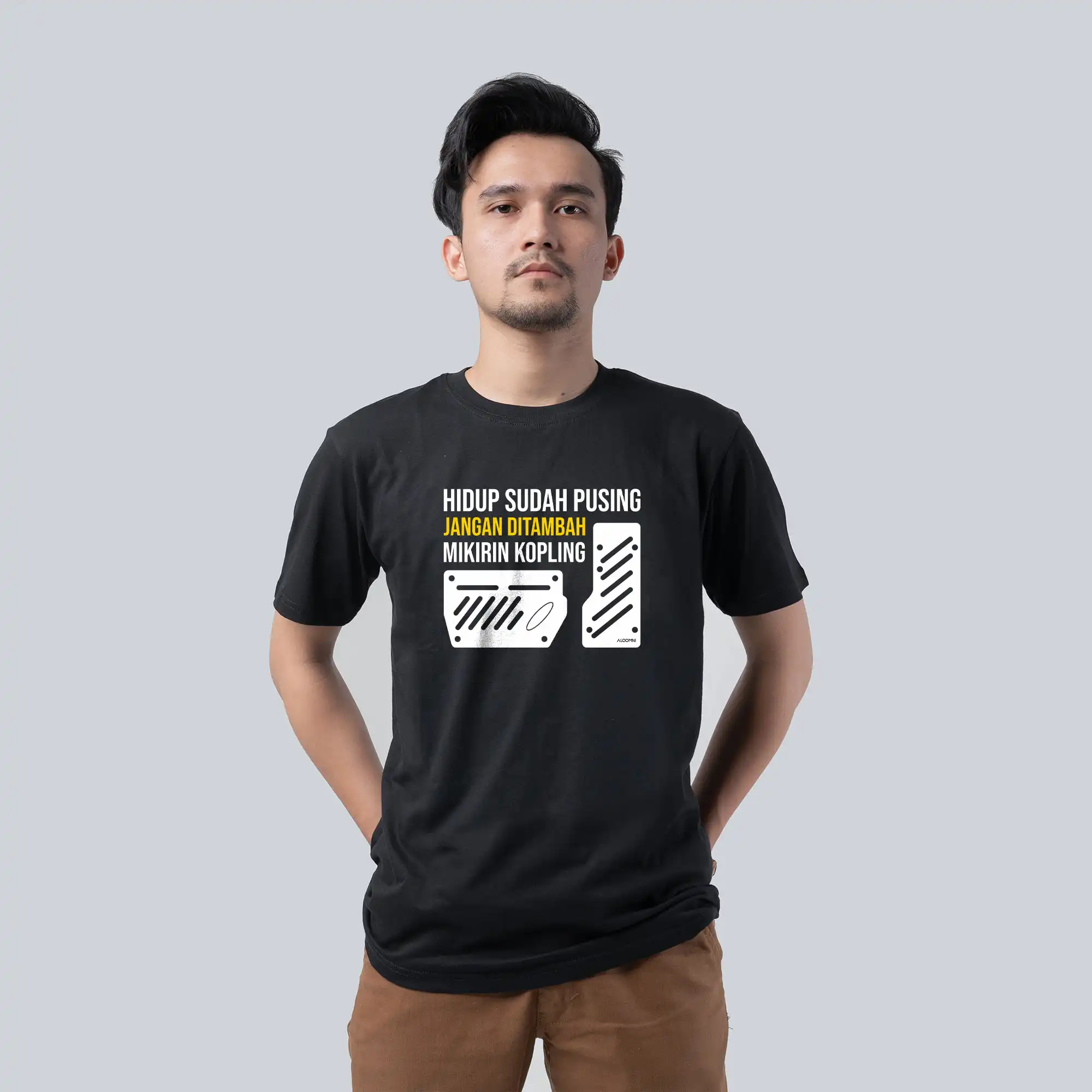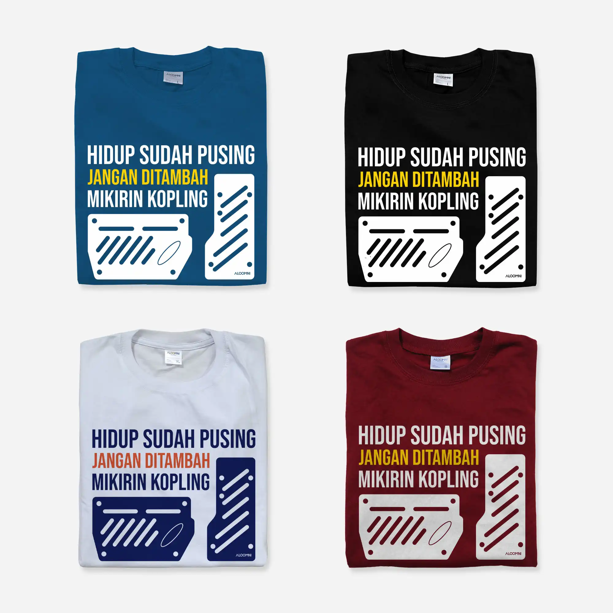 Kaos dari Aloomni menggabungkan desain eksklusif dengan semangat mendukung UMKM lokal. Dibuat dari bahan berkualitas, kaos Hidup sudah Pusing, jangan ditambah mikirin Kopling. Setiap pembelian adalah kontribusi nyata untuk mendukung produk Indonesia.